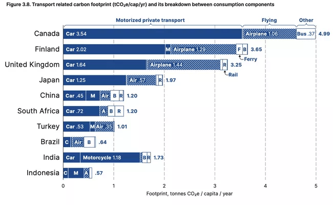But as the table shows, some people are not even close to this. The Canadians, with a lifestyle pretty close to that of Americans, lead at 14.2 tonnes per year, followed by Finland. [I think that this may illustrate the impact of dairy produce]